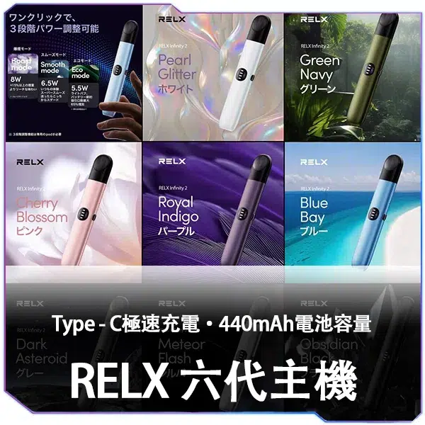 Relx Infinity 系列電子煙主機(悅刻6代 Infinity 2 & 5代 Infinity 1) 全新升級,支援三檔功率模式(Eco / Smooth / Boost),自由調節霧化體驗!搭載440mAh大電池,並支援15分鐘極速快充,帶來持久穩定的煙霧輸出。兼容4/5/6代電子煙煙彈,靈活搭配,隨時隨地享受醇厚口感!