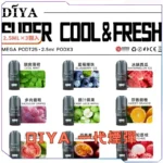 DIYA 叮啞電子煙煙彈,2.5mL 容量,22種口味,3% 尼古丁,兼容一代主機,換彈簡單。